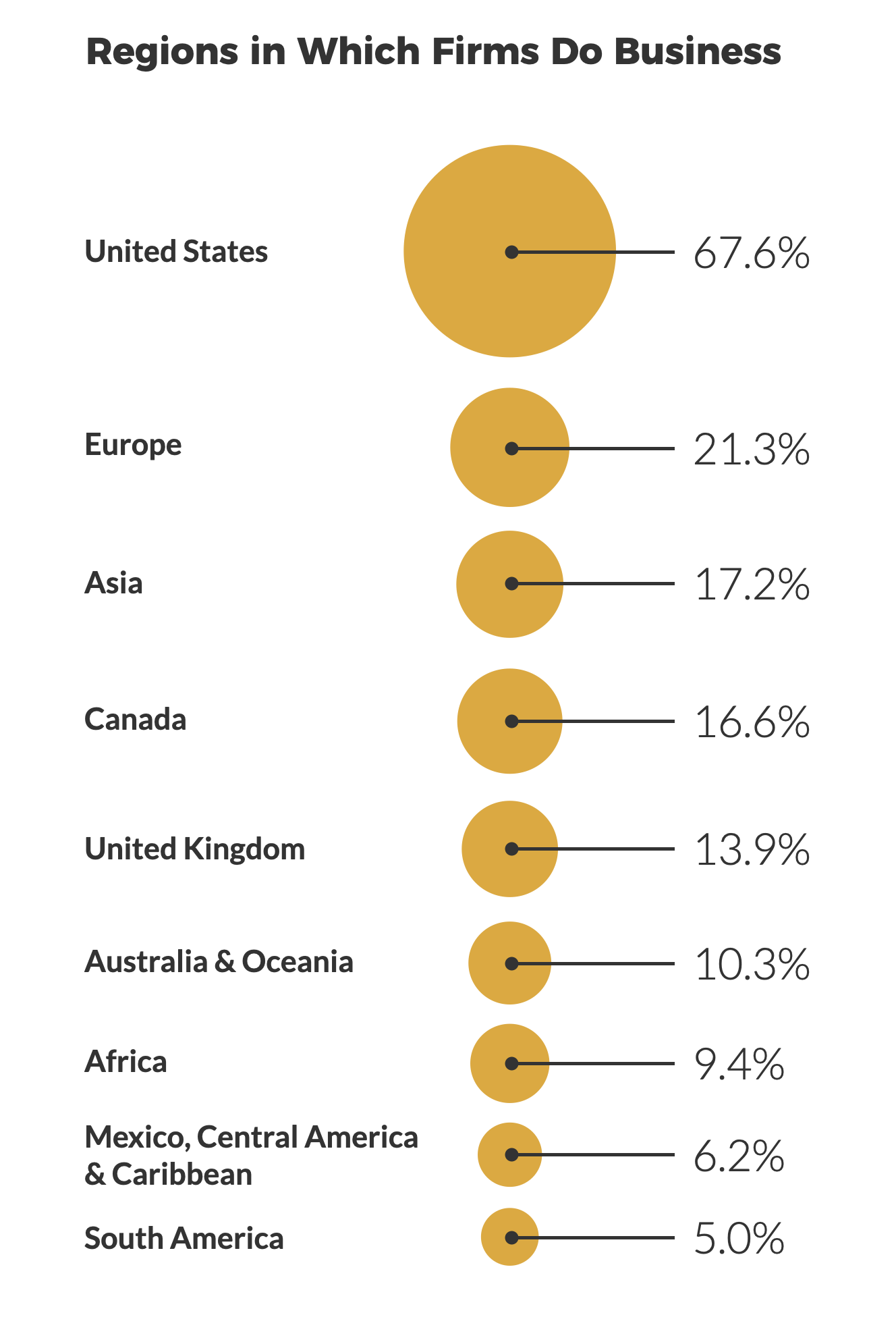 Over 700 firms participated, representing the six industry groups shown below. Full research reports are available for each of the industries. The sample contained firms of various size ranges, and they do business in every region of the globe.