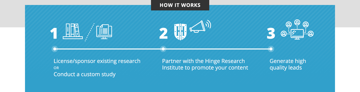 LEARN ABOUT OUR RESEARCH“The two custom research studies commissioned with the Hinge Research Institute allowed us to build more insights into a long-standing annual report providing us with premium, high-credibility content that we can use to generate visibility and facilitate sales conversions in two of our core markets.”