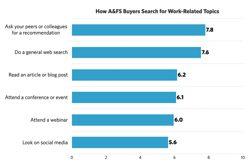 A&FS buyers have traditionally turned to a friend or colleague when investigating business related issues. No longer. Web searches are now on a virtual tie with asking a colleague for help.