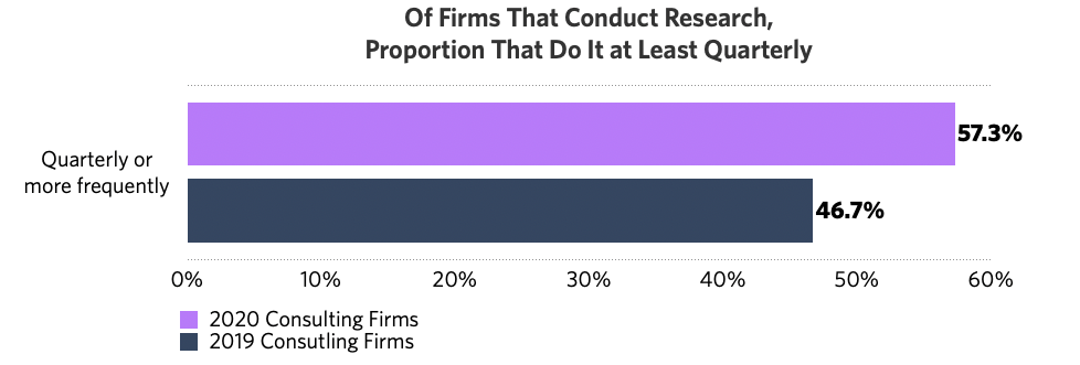 Our data shows that consulting firms are doing more research than ever before—a strategy used by many high-growth firms to keep abreast of the evolving marketplace. And they are doing research more frequently than before (see chart below).