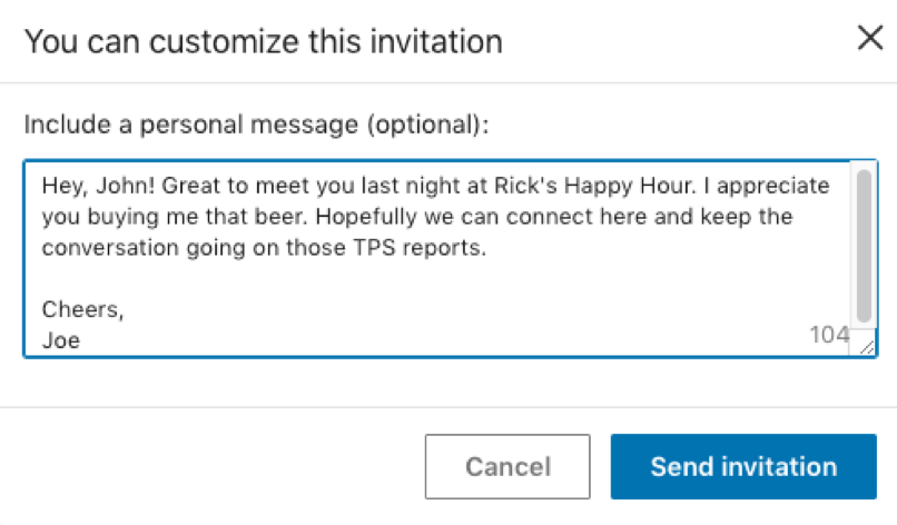 Edit this message to explain your reason for connecting. Make sure to mention anything you may have spoken about to help jog their memory.