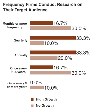 High Growth firms are more likely to conduct research on their target audience regularly.